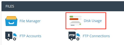Click the Disk Usage button in the Files section of your cPanel to see detailed information about your disk space usage.